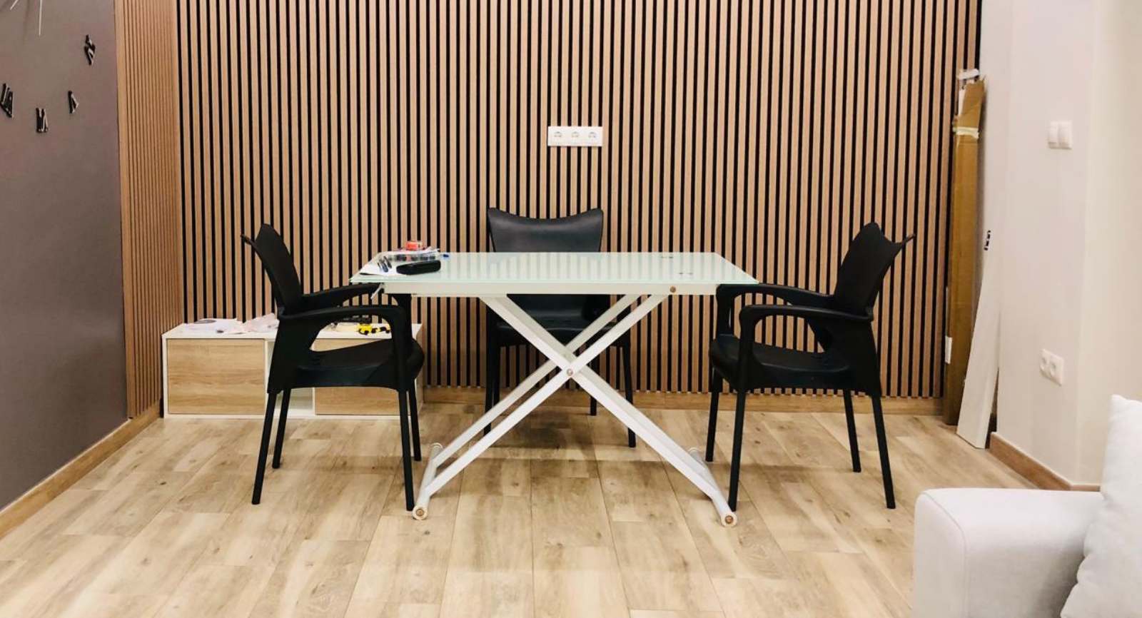 La combinación de molduras originales y palillería aporta carácter, equilibrio y una identidad propia al salón-comedor